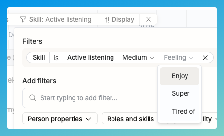 Operating skill management is very nice when you’re eager to find someone with a specific skill expertise and feeling related to that. As of writing (January 2025), we don’t yet support “medium or better” type of searches. Nevertheless, this allows you to find the right person, even if you’re looking for something highly specific: