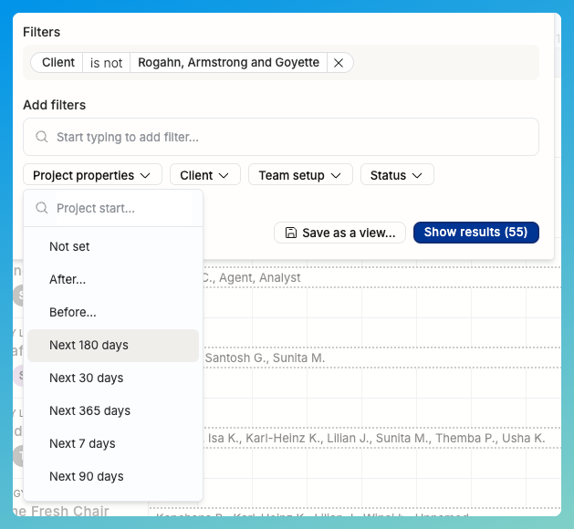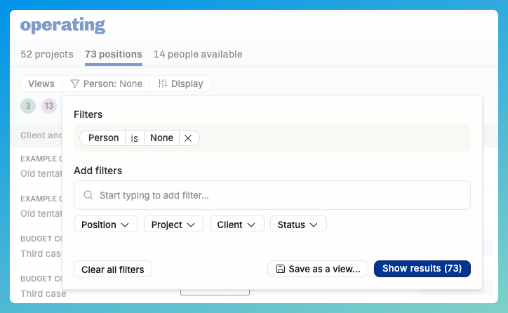 In order to understand how different parts of your business work, you need to be able to zoom in & out of the people, projects, clients and work allocations. The filtering features we’ve built may appear simple on the surface, but there’s a lot you can do once you understand it well.