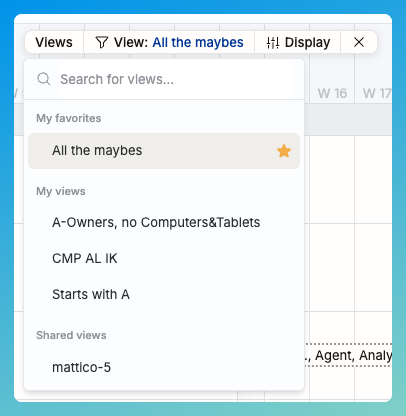 Next to it, you can find a Views button – that’s where you can save the filtering criteria and display options you frequently use.