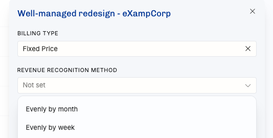 Fixed Price means that you will invoice exactly the budgeted amount. Revenue will be distributed in reports based on the revenue recognition model chosen. Using project rate card will help you plan the amount of effort.