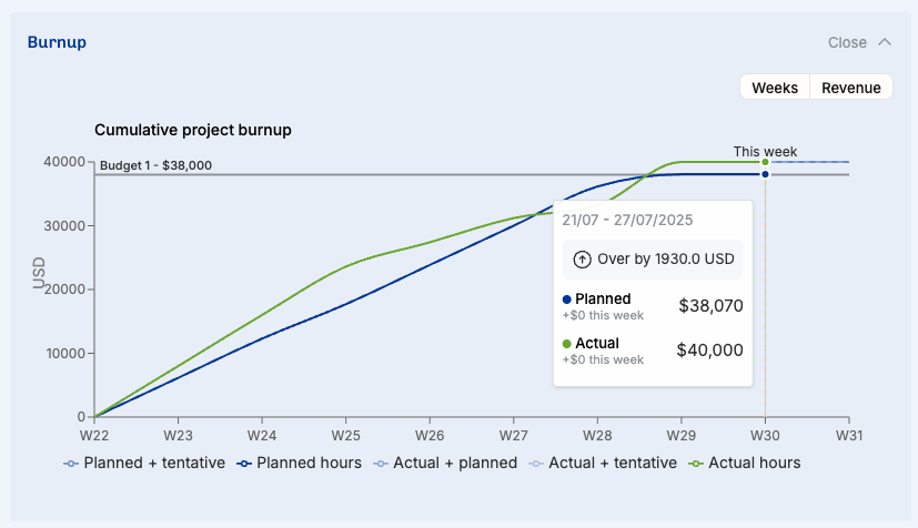 Now, it’s up you as a project manager to convince the client to extend that 38k budget to fit the extra $1930 – you don’t want that revenue to go to waste!